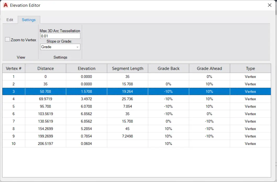 a. Vertex # – the sequence number of the vertex on the selected 3D Polyline, similar as in Properties panel.