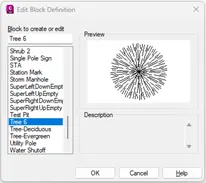When selecting COGO points in a drawing with identical symbol (block) names, the descriptions from the settings are used by default. The block names can be still edited in the Description column of the COGO Point Legend dialog. To change the default descriptions, click on the
