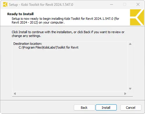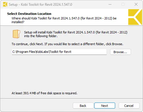 Double click on executable file Kobi_Toolkit_for_Revit.exe and run the application until setup window shows up.