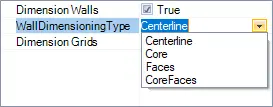 Dimensioning: For Walls and Grids you can define True or False for dimensioning. In Wall dimensioning time you can choose between – centerline, core, faces, or core faces.