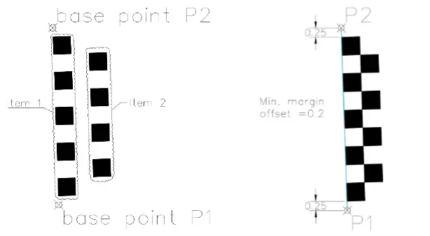 Minimal margin specified on the left image is 0.2, while actual margin offset is 0.25, since only whole pieces of rectangle shapes are drawn. Shapes are aligned By Group.