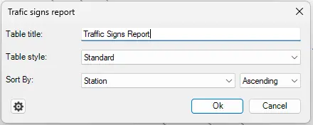Enter the name of the Table title in the “Traffic signs report” dialog box.