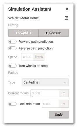 - Reverse – Switch to reverse driving. This setting is also updated in the Simulation Assistant dialog. Choose the Forward option to switch back to forward driving.
