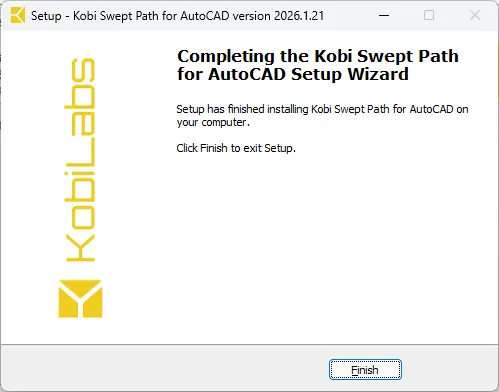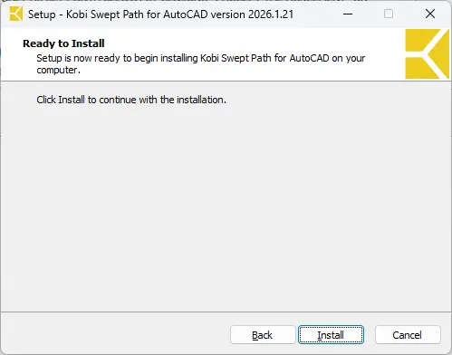 Double click on executable file Kobi_Swept_Path.exe and run the application until setup window shows up.