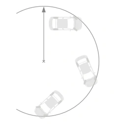 - Wall to wall radius: Current turning radius, measured from the center of the turning circle to the outermost point of the vehicle body.