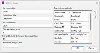 f. Enter a description for each block. The description is displayed in the second column next to the COGO point symbol in the point legend.